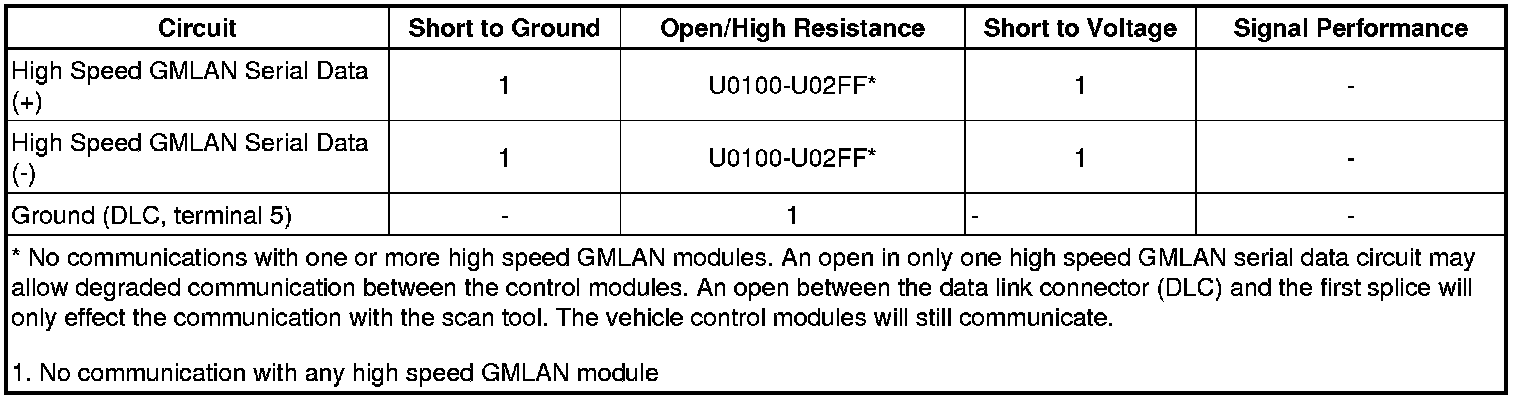 * Communication may be available between the BCM and the scan tool with the high speed GMLAN serial data system inoperative. This condition is due to the BCM using both the high and low speed GMLAN systems.
