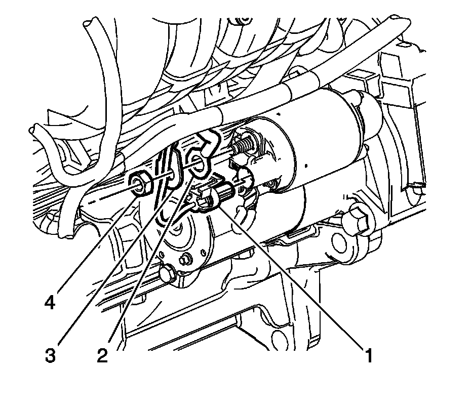4. Install the positive battery cable terminal (3) to the starter Ensure that the anti-rotational tab is correctly located into the indexing slot.