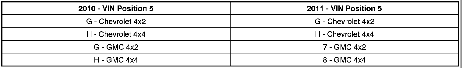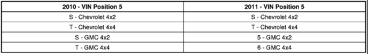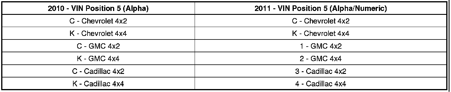 To comply with Federal Regulatory changes beginning with the 2011 model year, General Motors is making changes to the VIN system. Each vehicle shall be uniquely identified in VIN positions 4-8. Prior to 2010, each vehicle was uniquely identified using the World Make/Manufacturer Identifier (WMI) in VIN positions 1-3. As a result of this change, General Motors LLC has made the following changes to comply with FMVSR 565 for the 2011 model year.