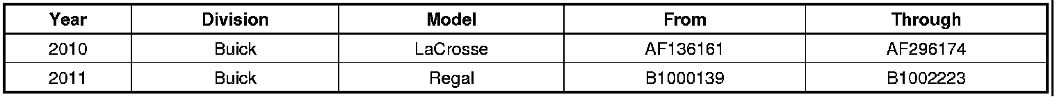 Dealers are to confirm vehicle eligibility prior to beginning repairs by using GMVIS (dealers using WINS) or the Investigate Vehicle History link (dealers using GWM). Not all vehicles within the above breakpoints may be involved.
