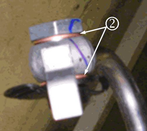 5. Re-install the power steering gear inlet hose. Ensure that two new copper gaskets (2) are installed BEFORE re-installing the power steering inlet hose.