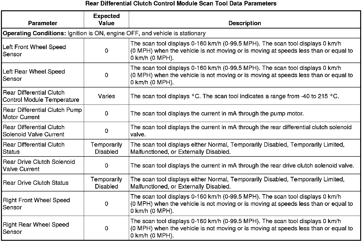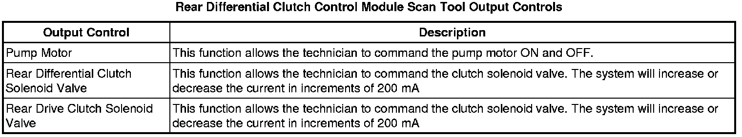 Rear Differential Clutch Control Module Scan Tool Information