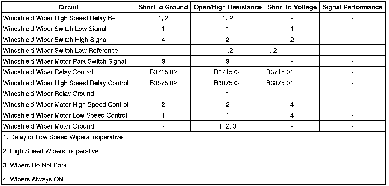 • If the wipers are not operating at high speed, refer to Windshield Wiper Motor Circuit Test.