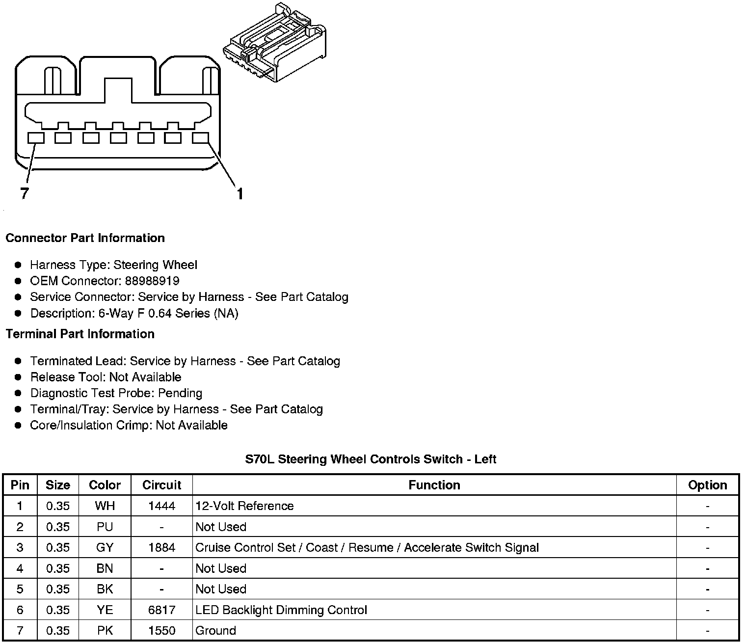 S70L Steering Wheel Controls Switch - Left
