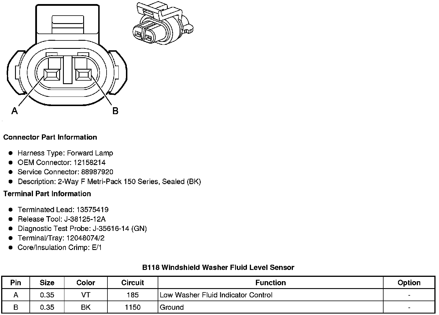 B118 Windshield Washer Fluid Level Sensor