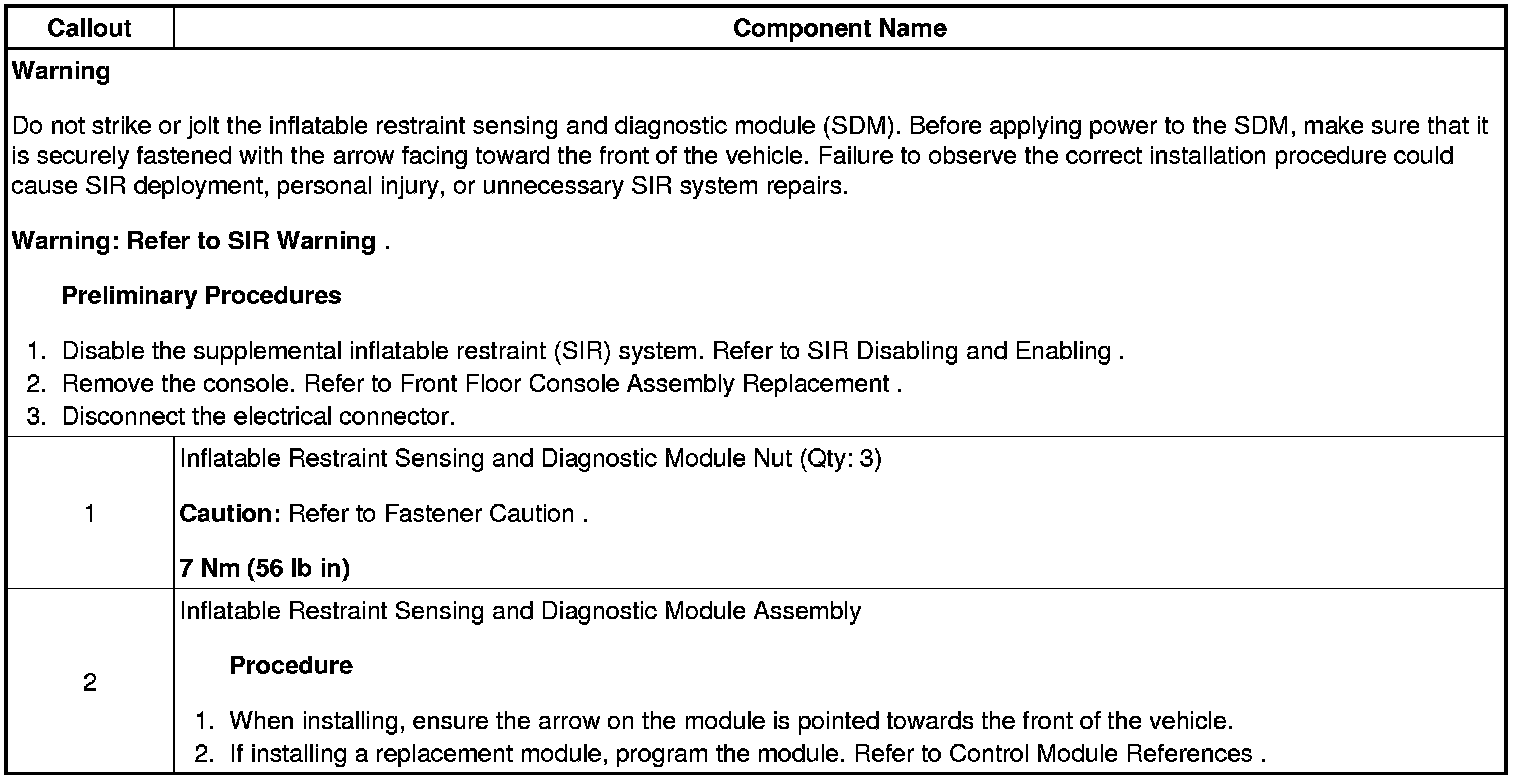 Inflatable Restraint Sensing and Diagnostic Module Replacement