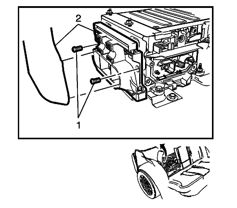 3. Install the generator control module cover fastener (2) and tighten to 9 Nm (80 lb in).