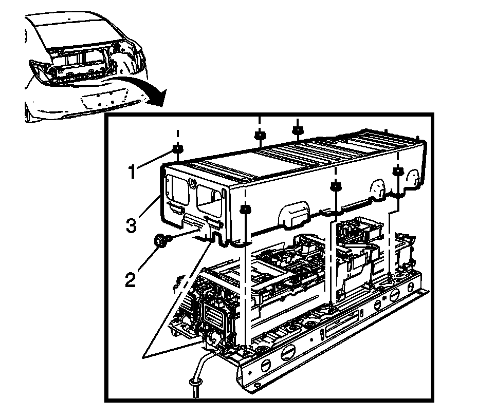 9. Install the drive motor generator battery bracket. Refer to Drive Motor Generator Battery Bracket Replacement Drive Motor Generator Battery Bracket Replacement.