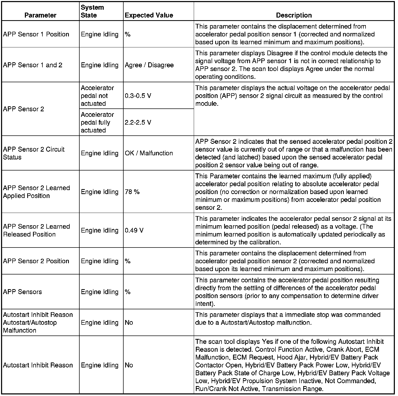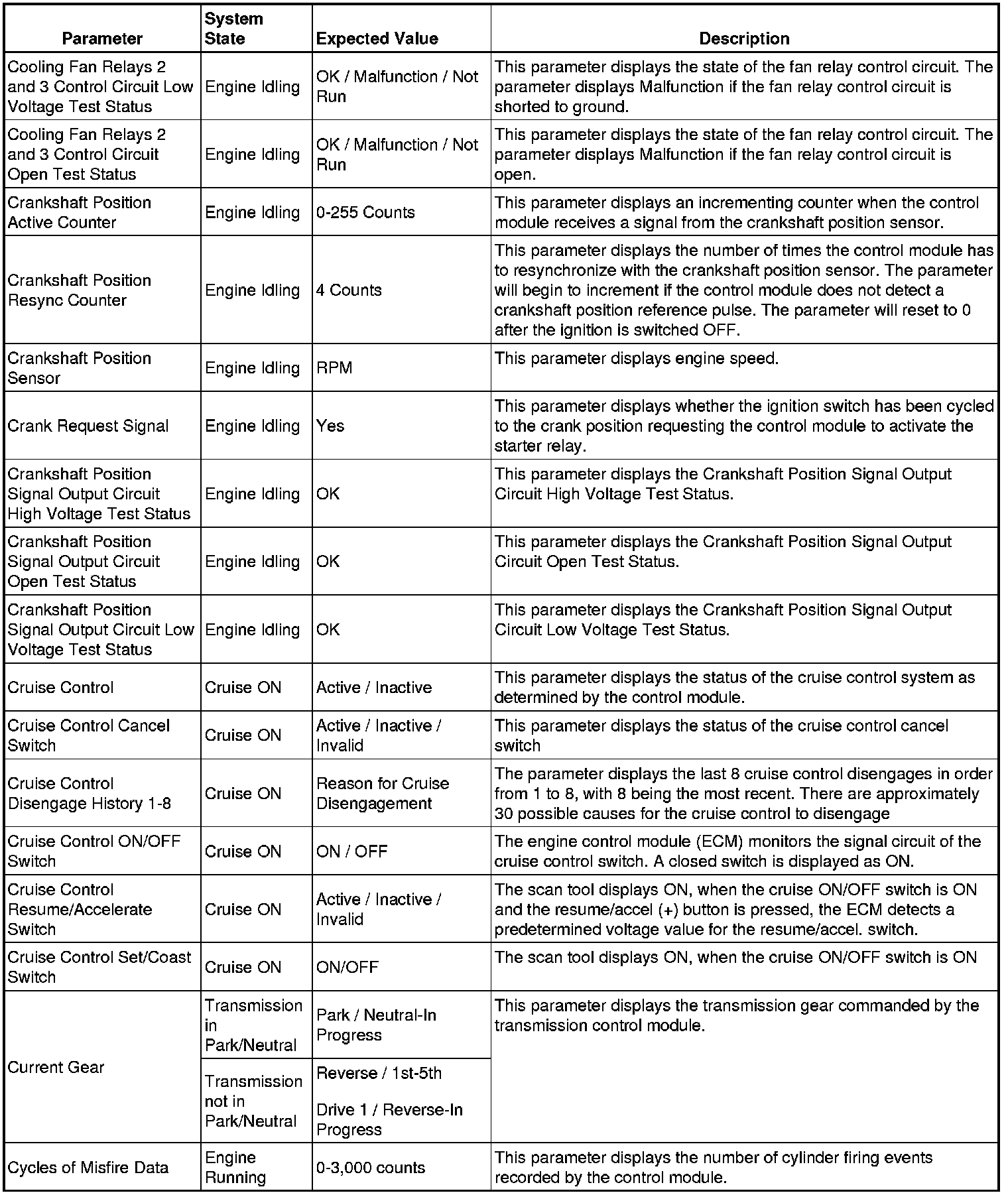 Only the parameters listed below are referenced in this service manual for use in diagnosis.