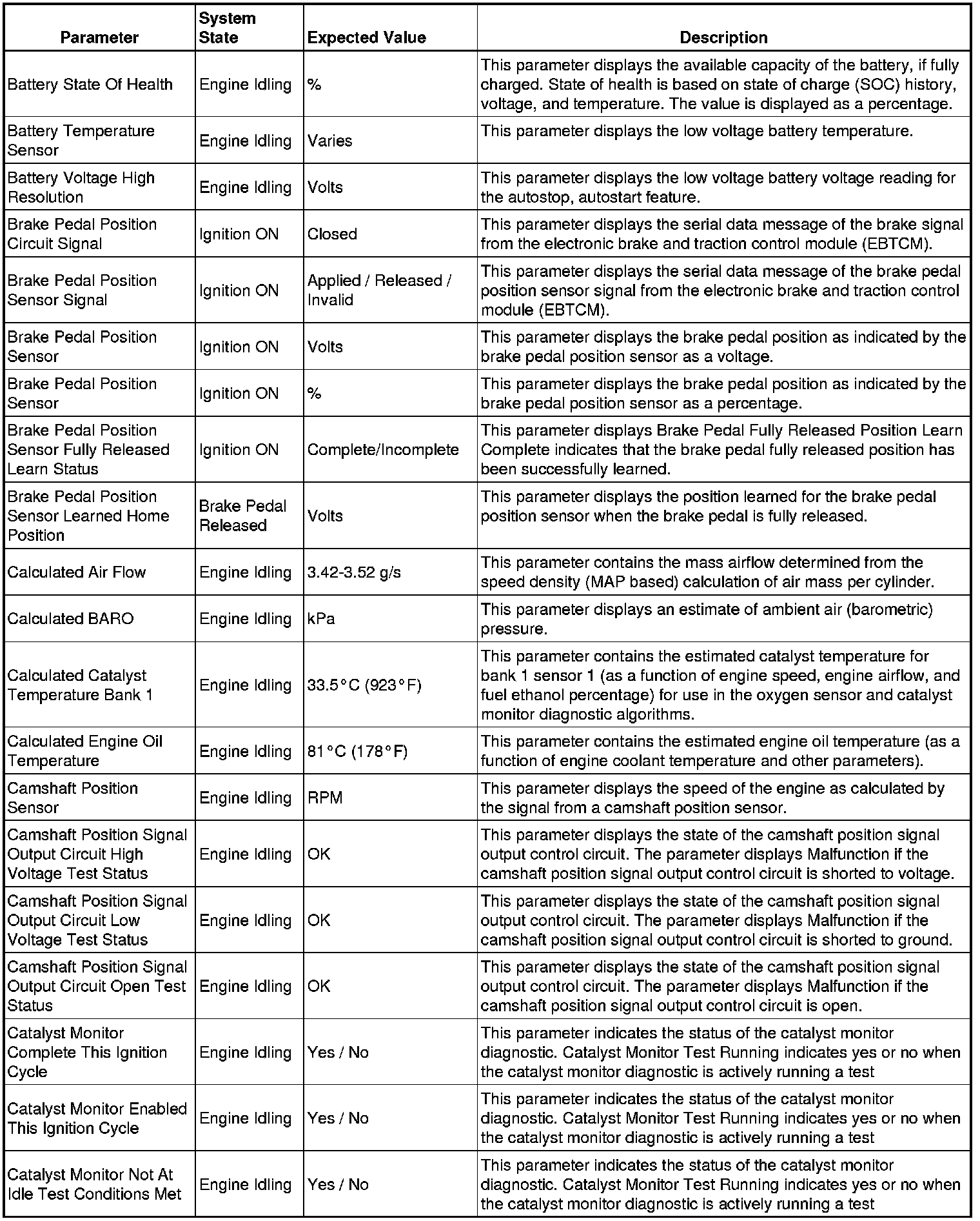 The Engine Control Module Scan Tool Data List contains all engine-related parameters that are available on the scan tool. The list is arranged in alphabetical order. A given parameter may appear in any one of the data lists, and in some cases may appear more than once, or in more than one data list in order to group certain related parameters together.
