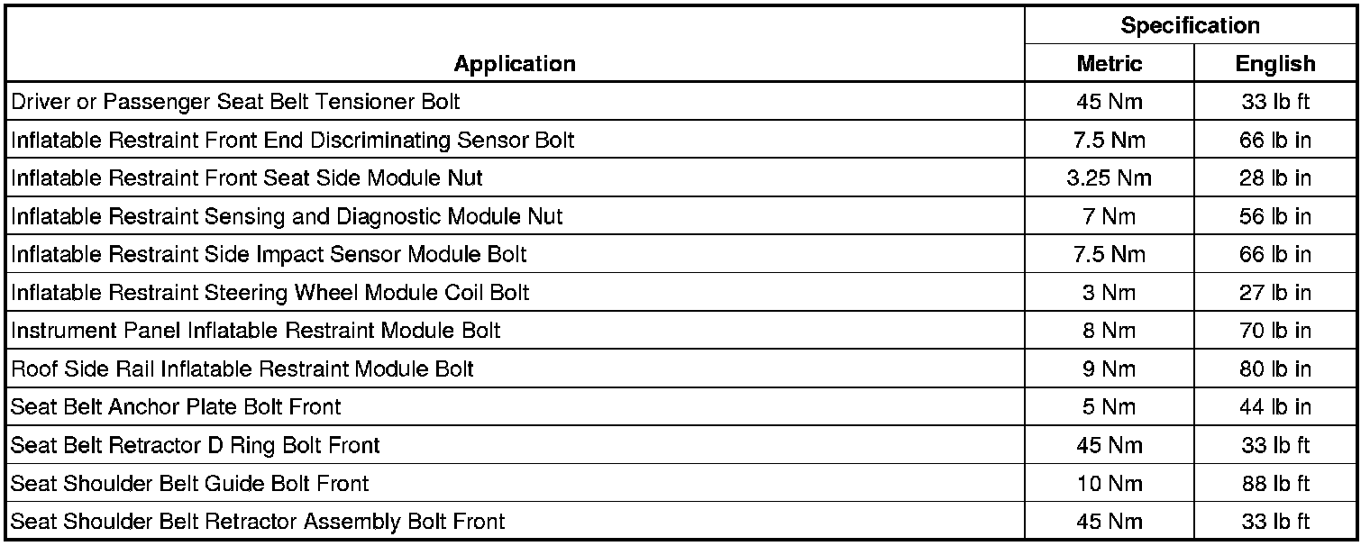 Fastener Tightening Specifications
