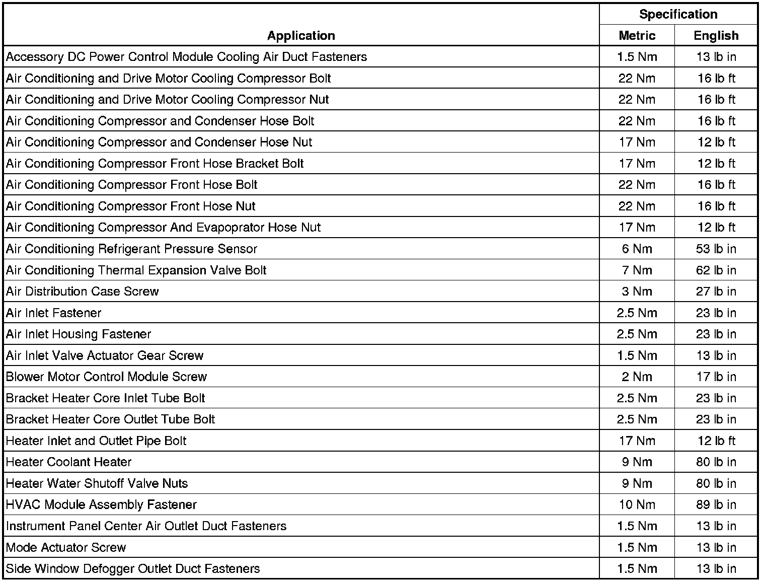 Fastener Tightening Specifications