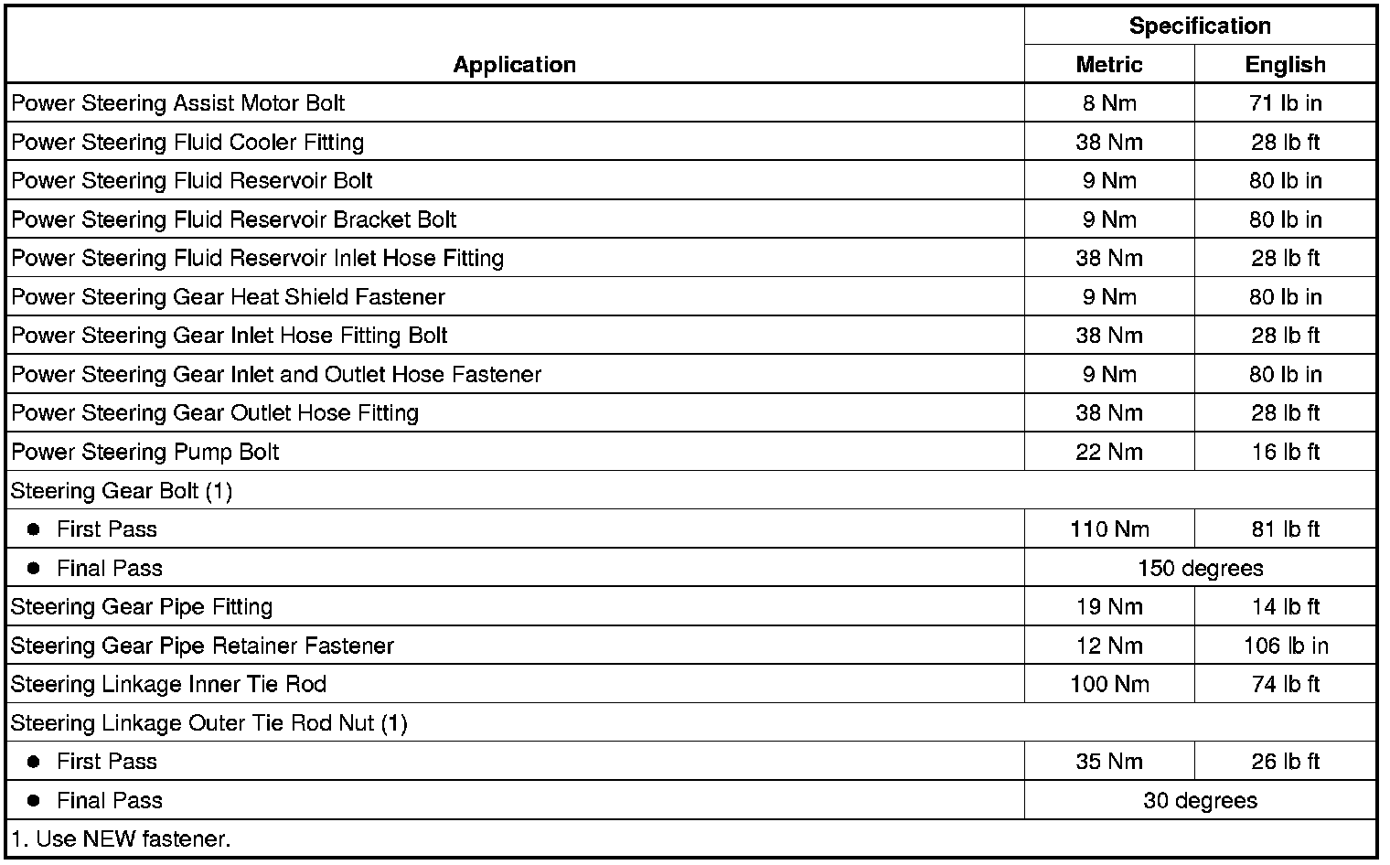 Fastener Tightening Specifications