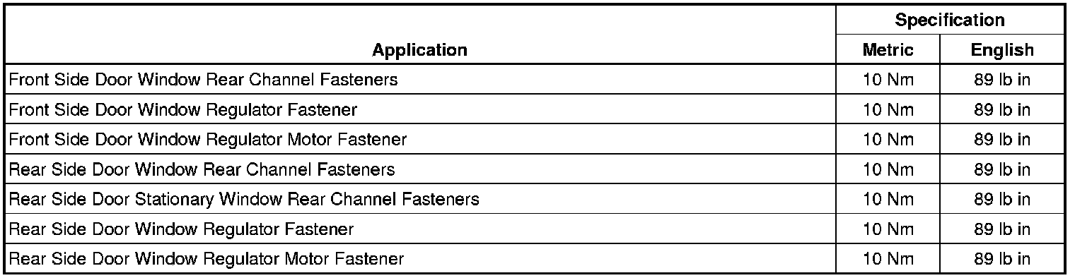 Fastener Tightening Specifications