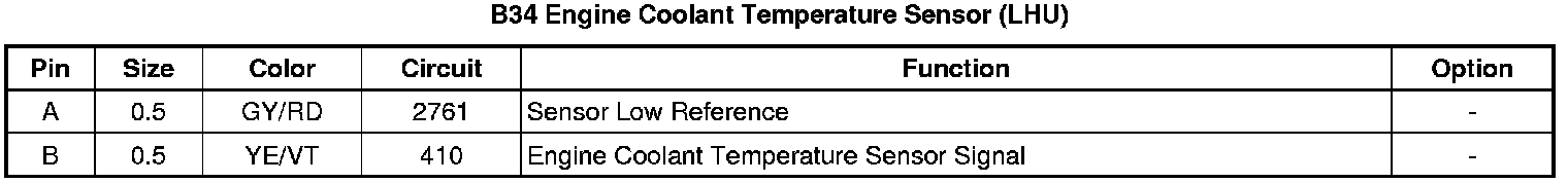 B34 Engine Coolant Temperature Sensor (LHU)
