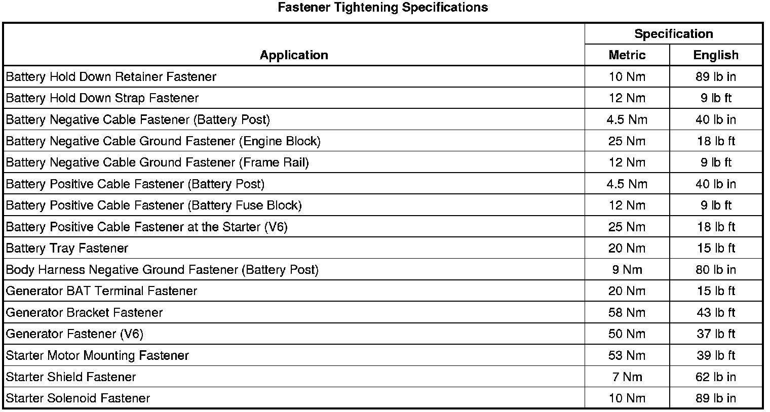Fastener Tightening Specifications