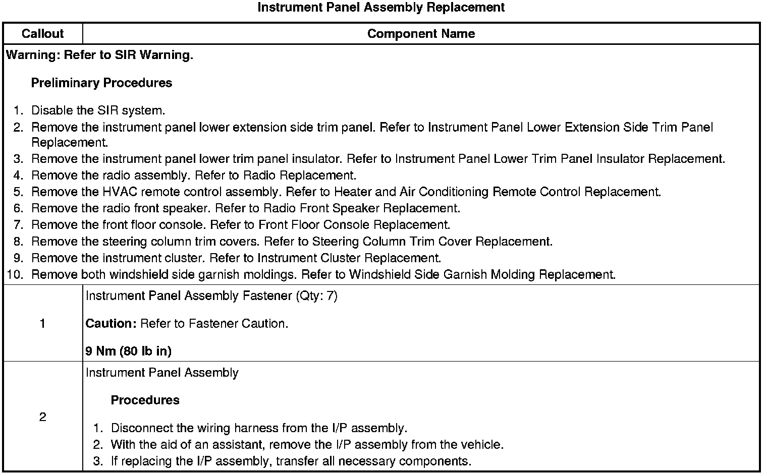 Instrument Panel Assembly Replacement