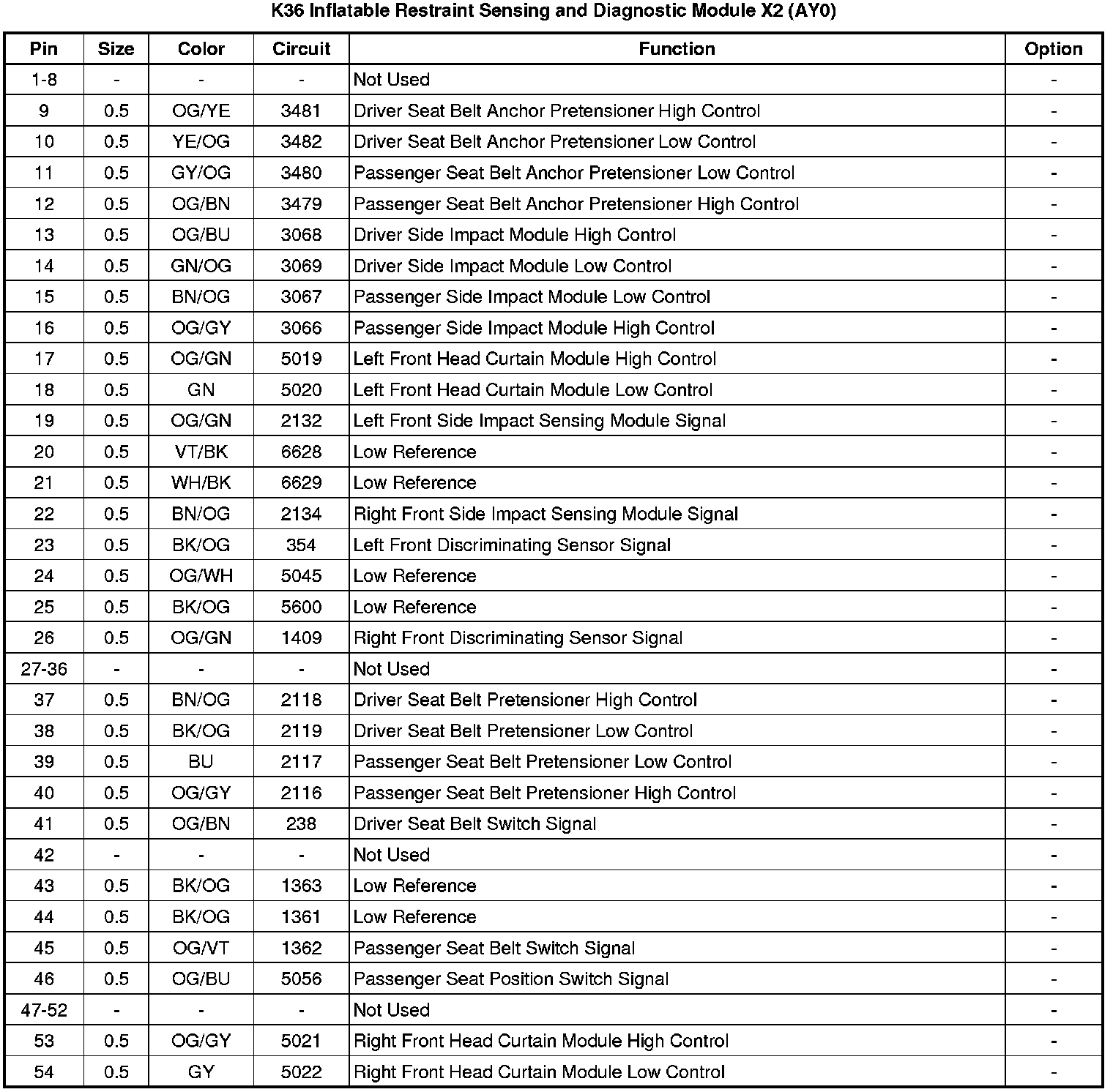 K36 Inflatable Restraint Sensing and Diagnostic Module X2 (AY0)