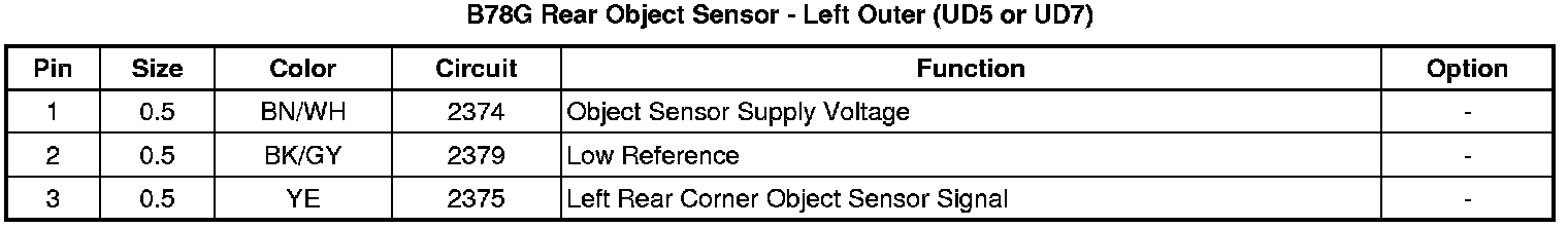 B78G Rear Object Sensor - Left Outer (UD5 or UD7)