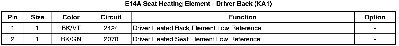 Seat Heating Element - Driver Back (KA1)