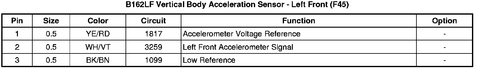 B162LF Vertical Body Acceleration Sensor - Left Front (F45)