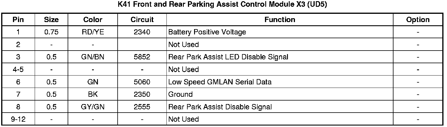 Front and Rear Parking Assist Control Module X3 (UD5)