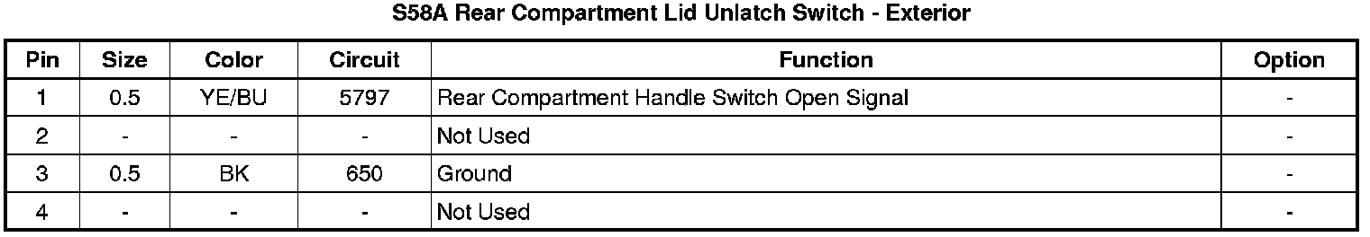 S58A Rear Compartment Lid Unlatch Switch - Exterior