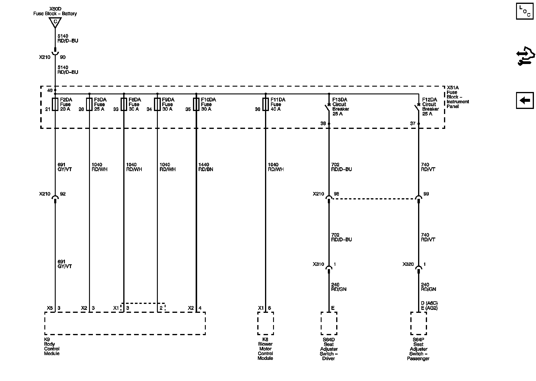 F2DA, F3DA, F8DA, F9DA, F10DA and F11DA Fuses, F12DA and F13DA Circuit Breakers