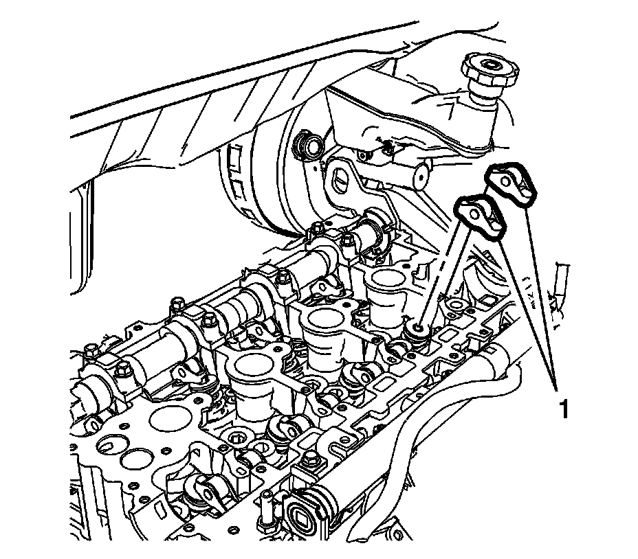 12. Remove the valve spring keepers (1).