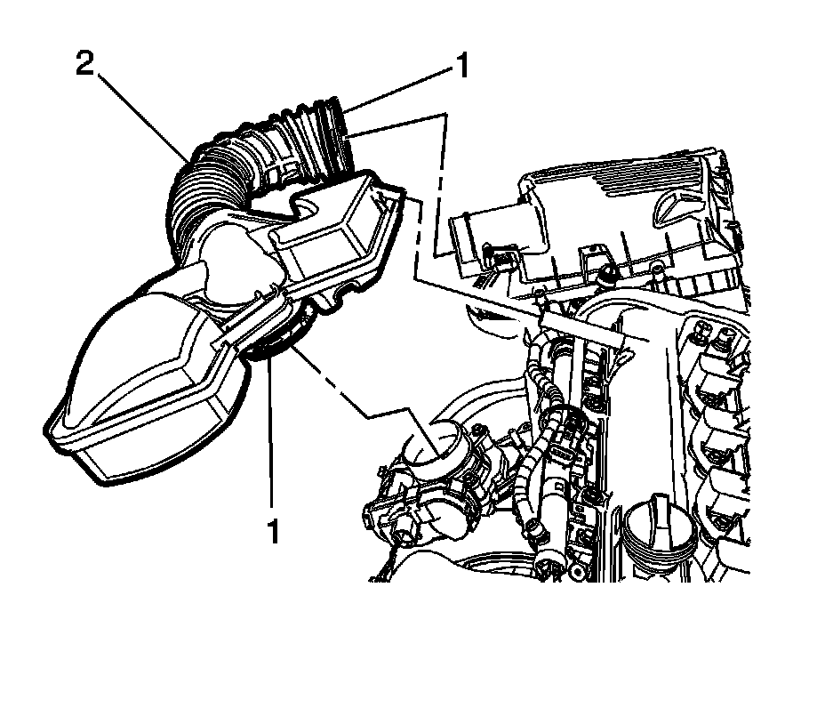 1. Remove the air cleaner outlet duct (2). Refer to Air Cleaner Outlet Duct Replacement Service and Repair.