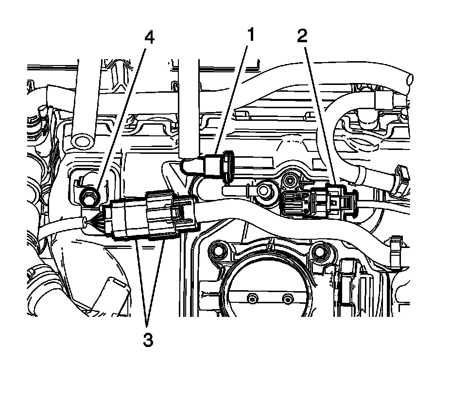 16. Install the fuel injector wiring harness fastener (4) to the intake manifold.