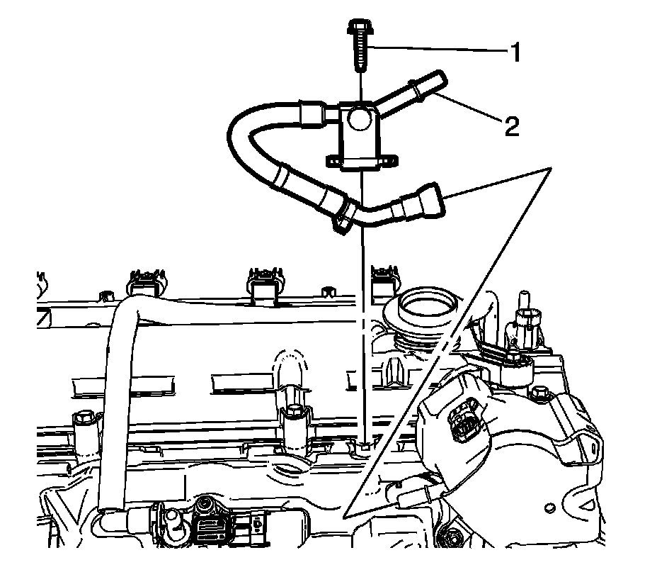 7. Install the fuel feed pipe (2). Refer to Fuel Feed Pipe Replacement Fuel Feed Pipe Replacement.