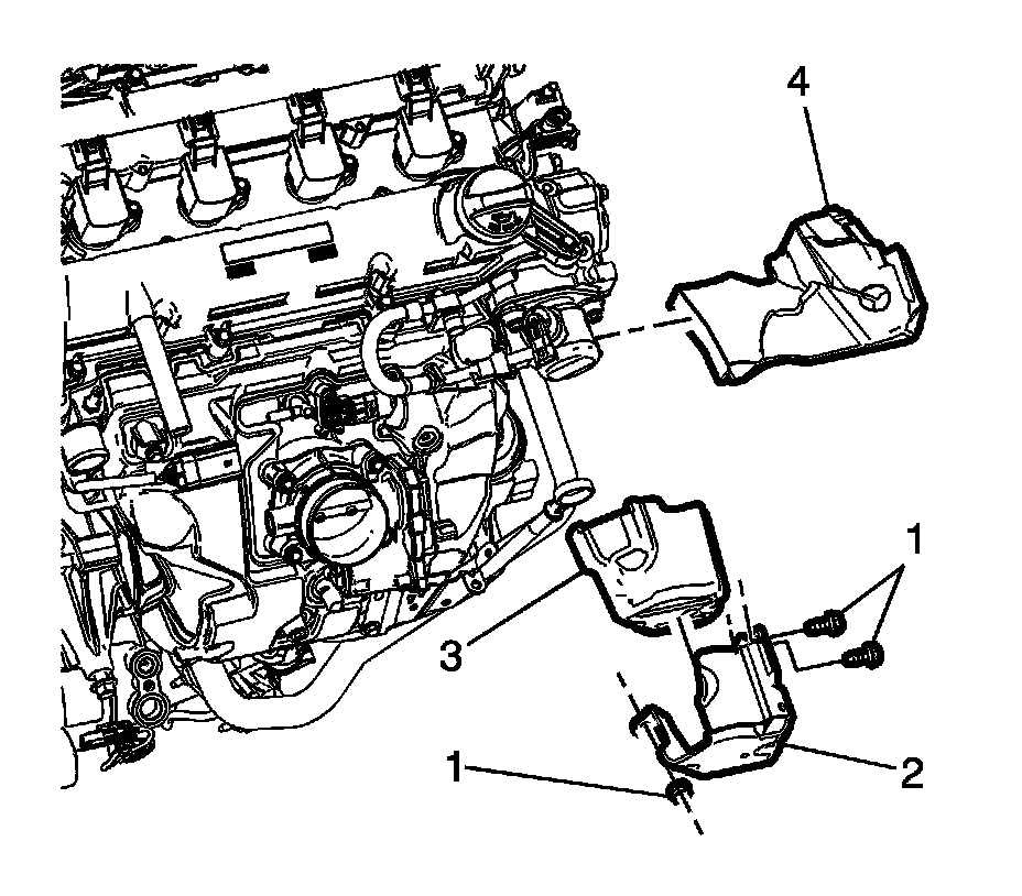 14. Remove the throttle body (2). Refer to Throttle Body Assembly Replacement Removal and Replacement.