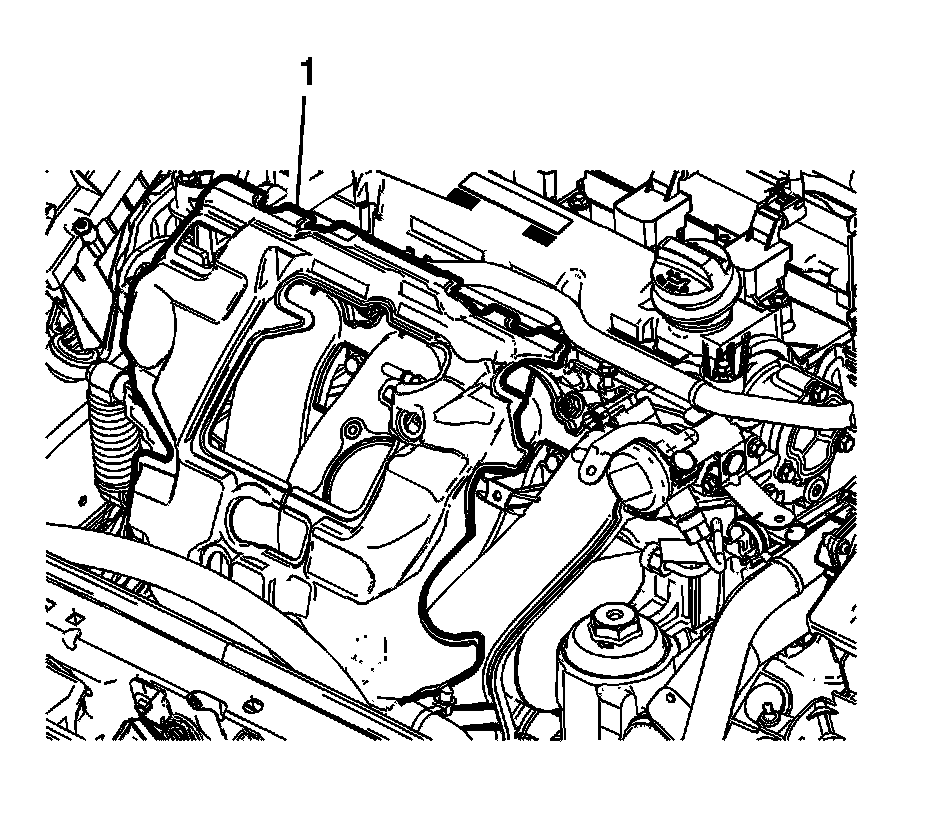 7. Disconnect the evaporative emission (EVAP) canister purge tube (1) from the intake manifold. Refer to Plastic Collar Quick Connect Fitting Service Service and Repair.