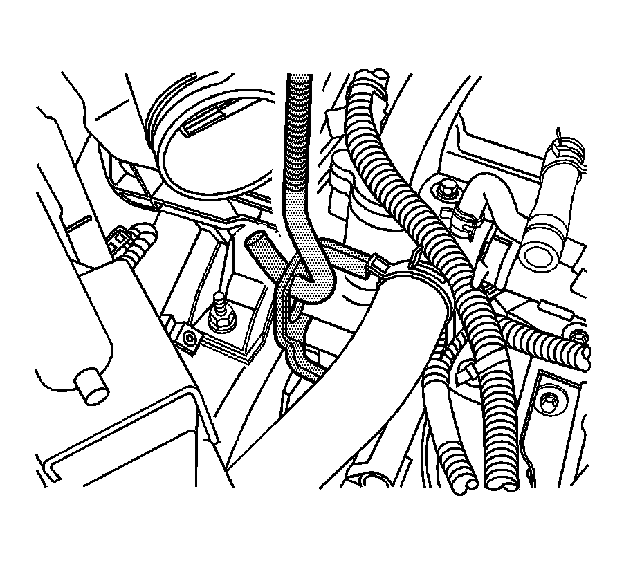 15. Install the lift hook J-28467-7A through the engine front lift bracket.