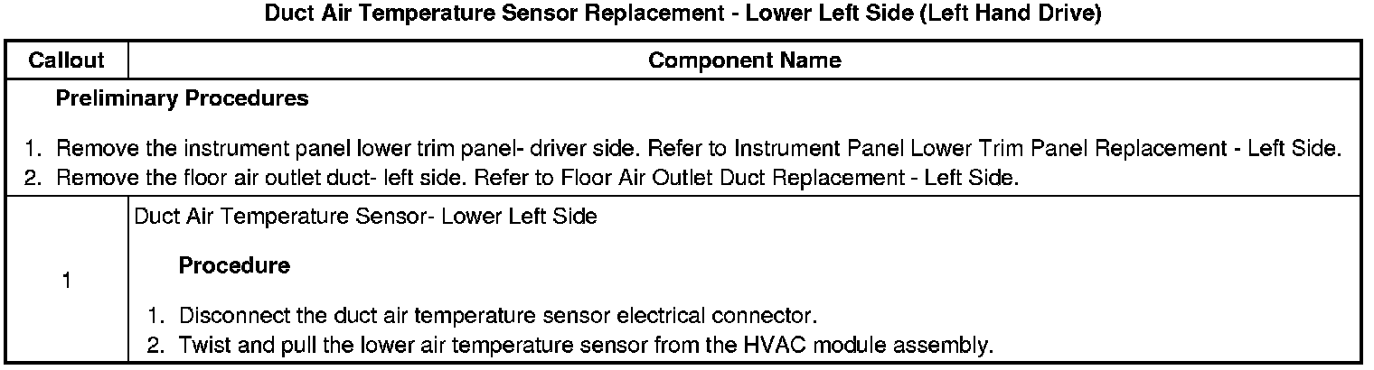 Duct Air Temperature Sensor Replacement - Lower Left Side (Left Hand Drive)