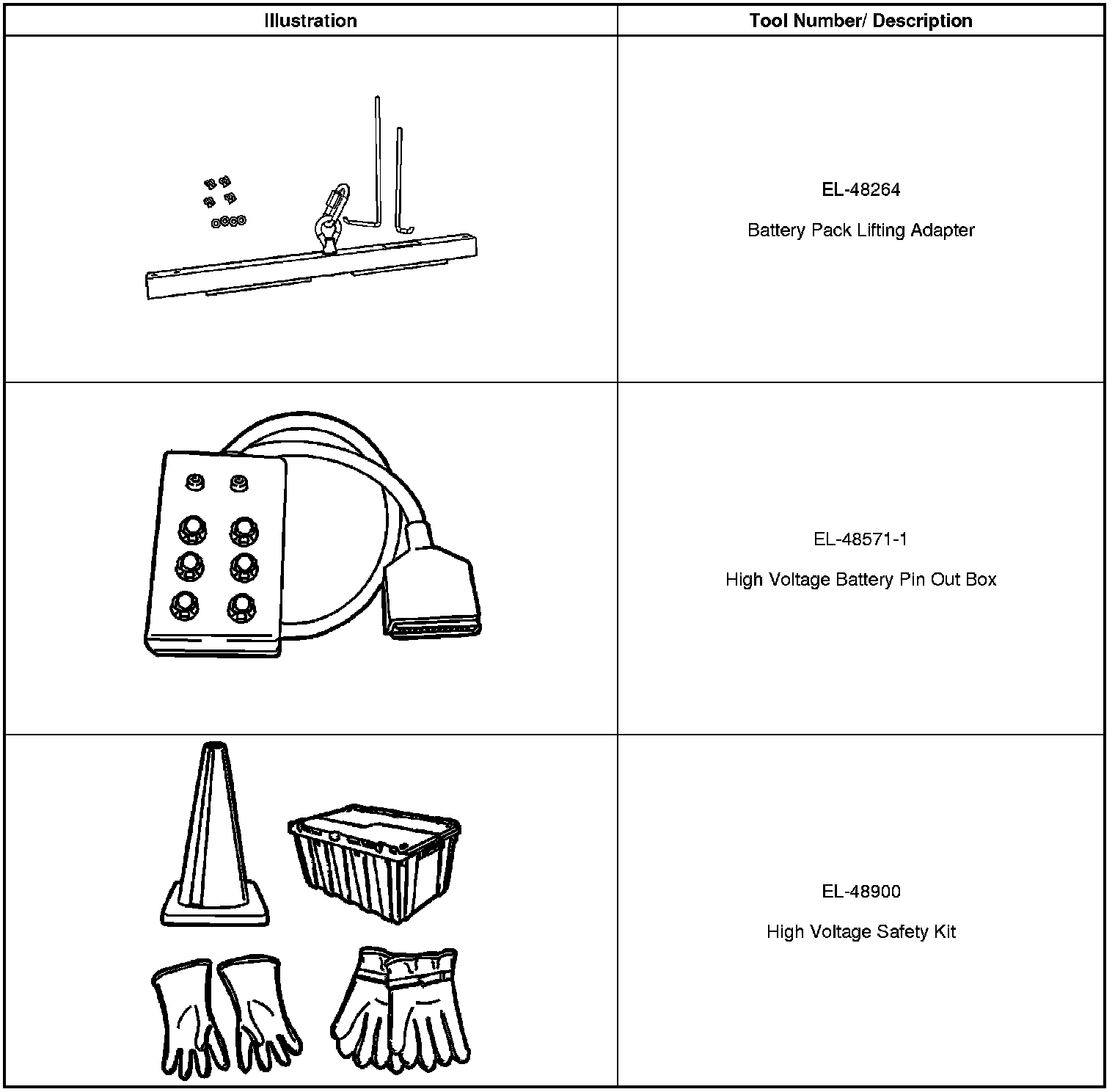 Battery System, Hybrid Drive: Tools and Equipment