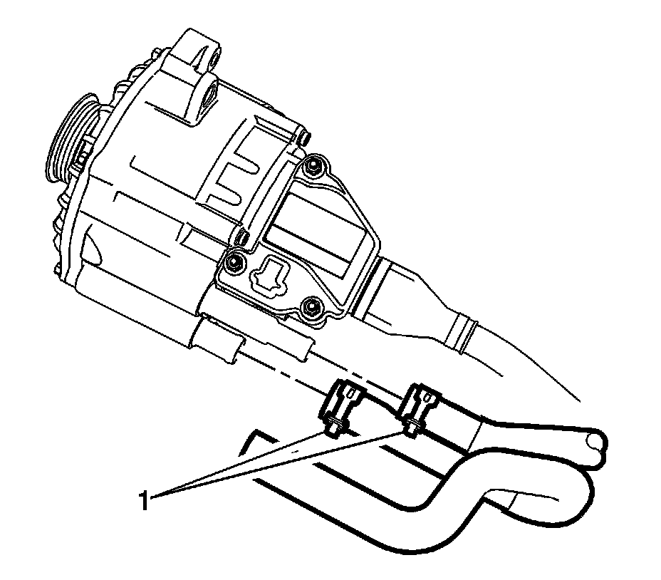 12. Install the starter generator hoses and clamps (1).