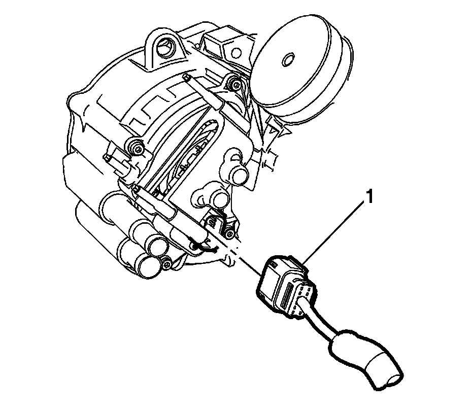 8. Install the drive belt tensioner stop bolt (1) and the drive belt tensioner stop. Tighten to 9 Nm (80 lb in).