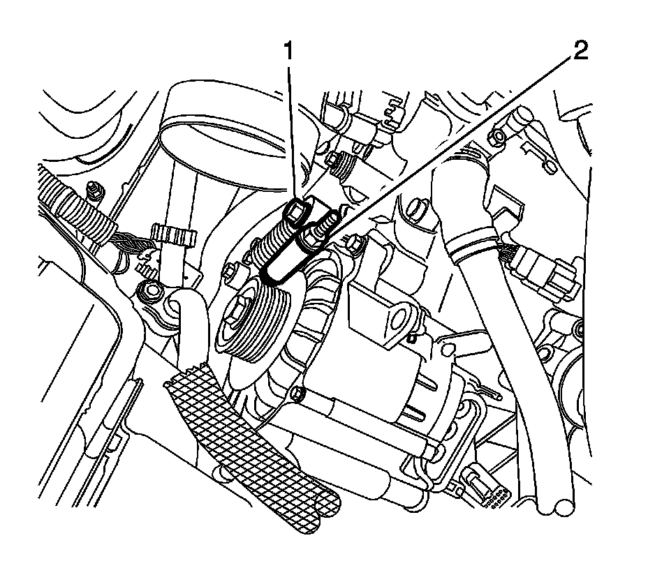 12. Install the EN-48932 - compressor tool (2)to the drive belt tensioner spring.
