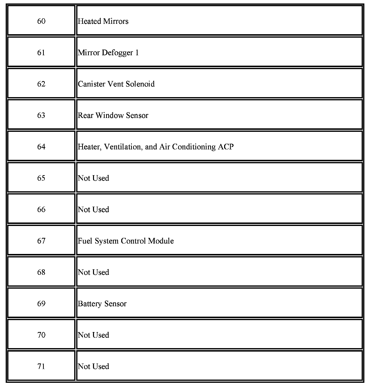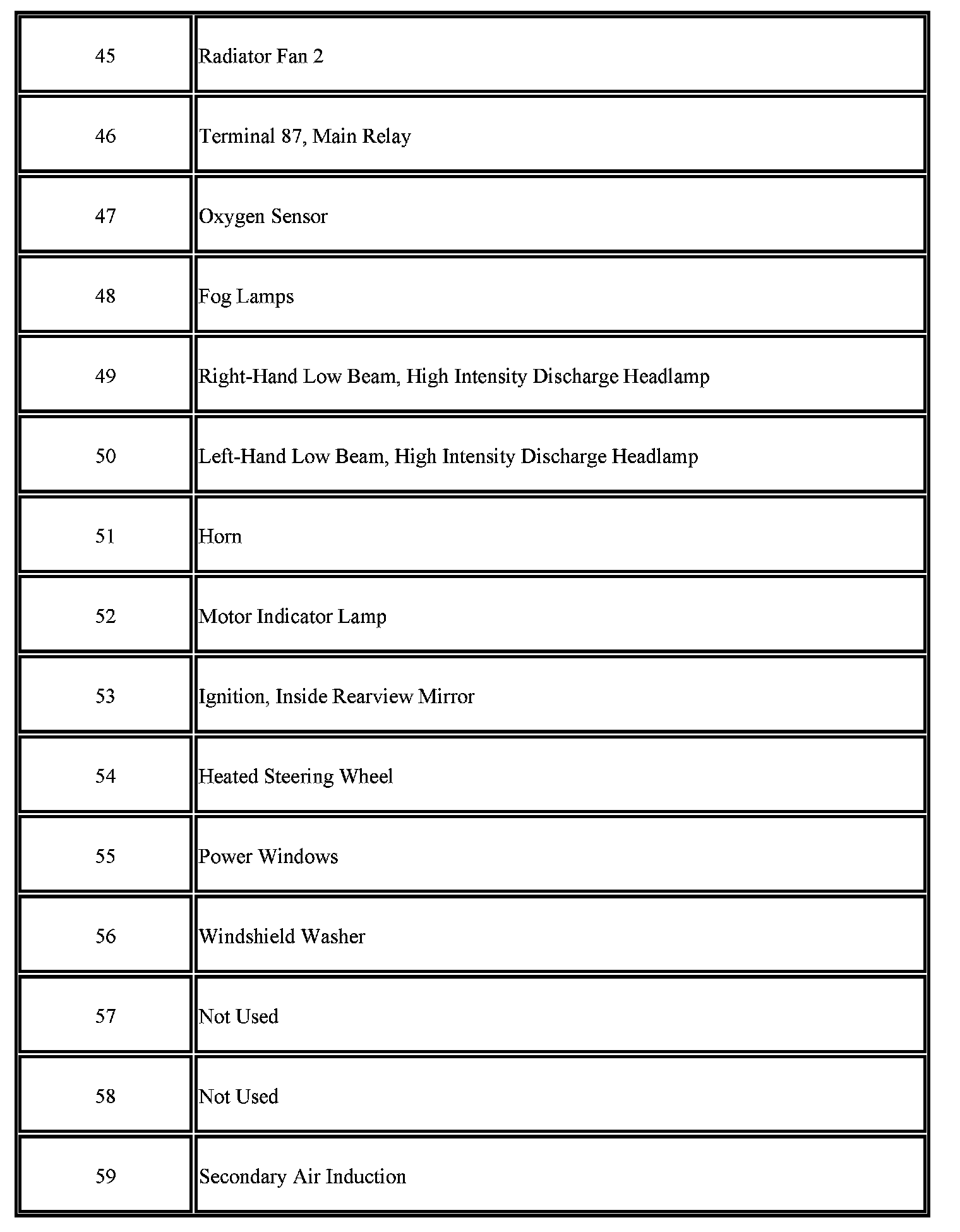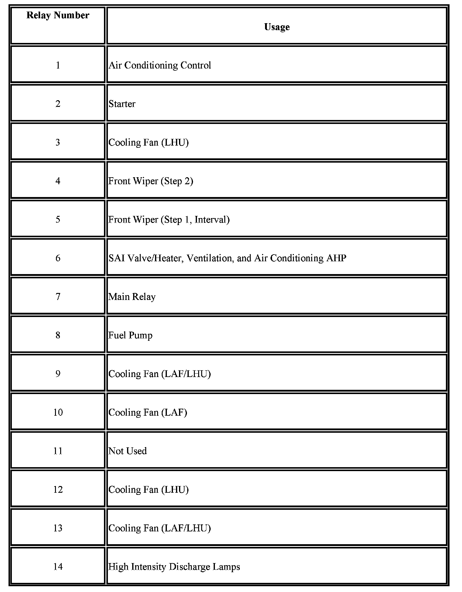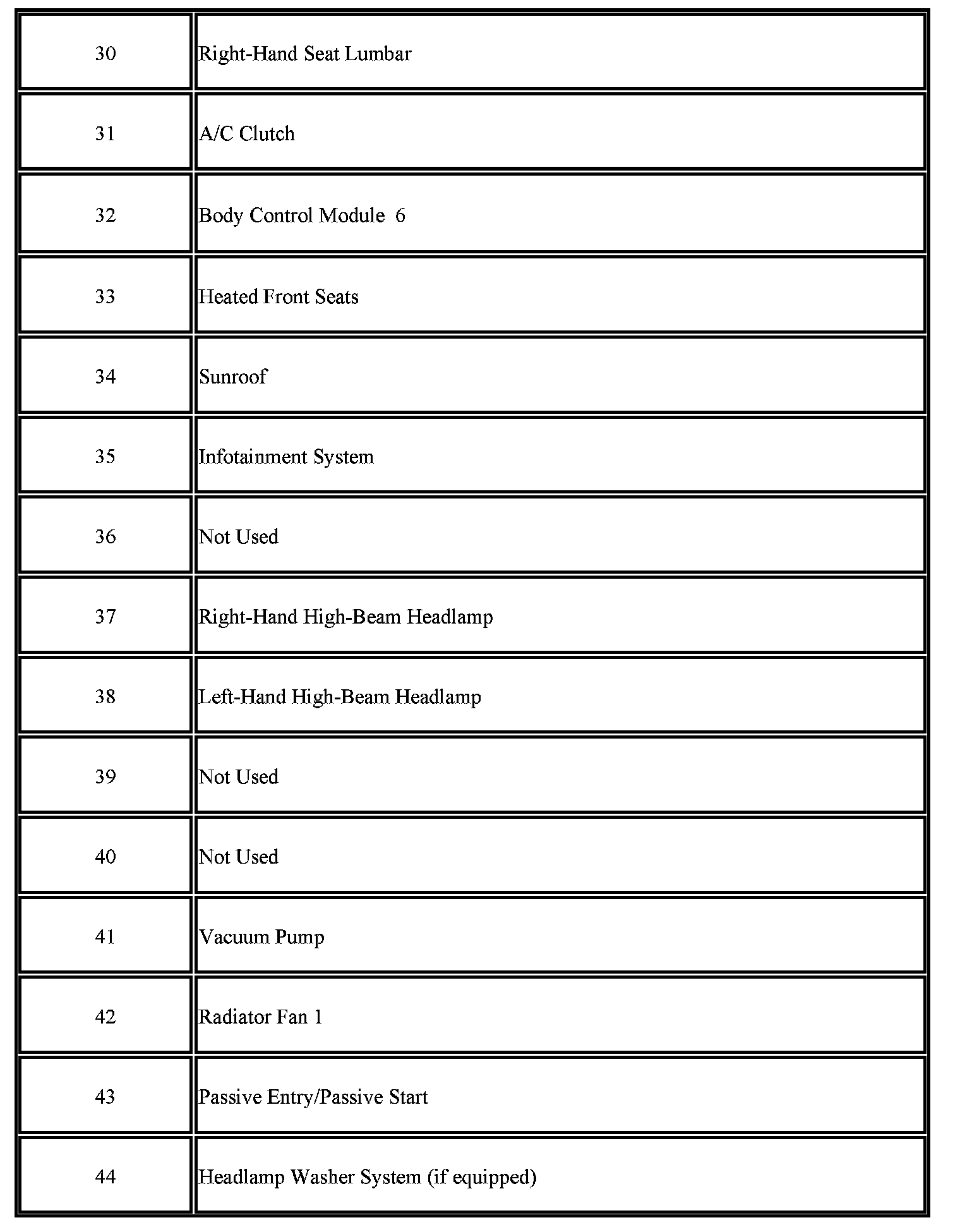 The vehicle may not be equipped with all of the fuses, relays, and features shown.