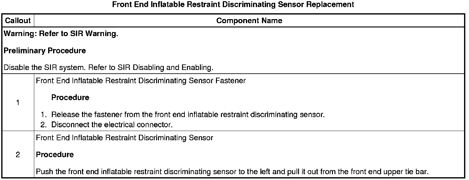 Front End Inflatable Restraint Discriminating Sensor Replacement