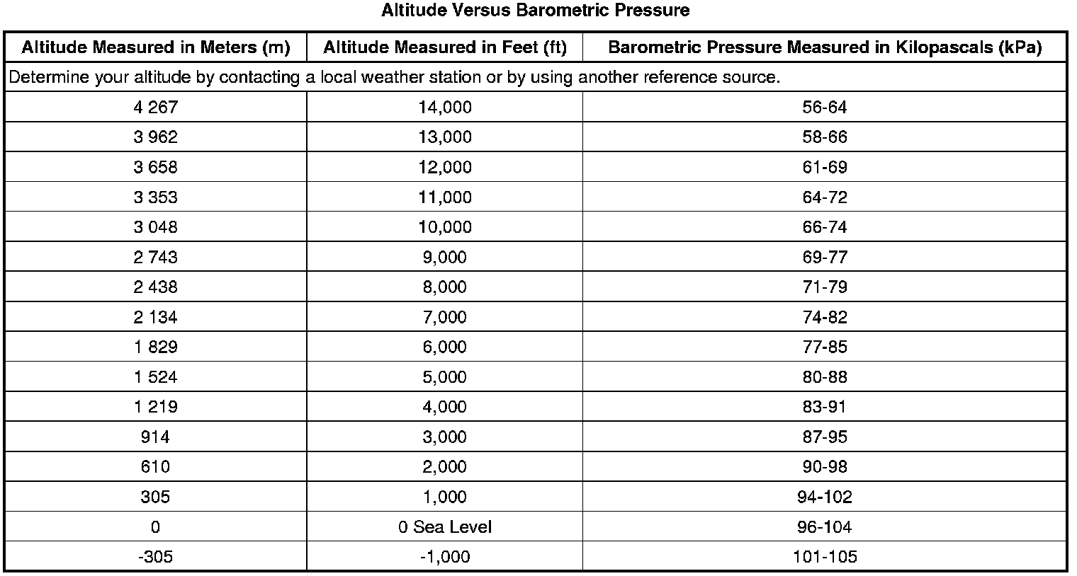 Altitude Versus Barometric Pressure