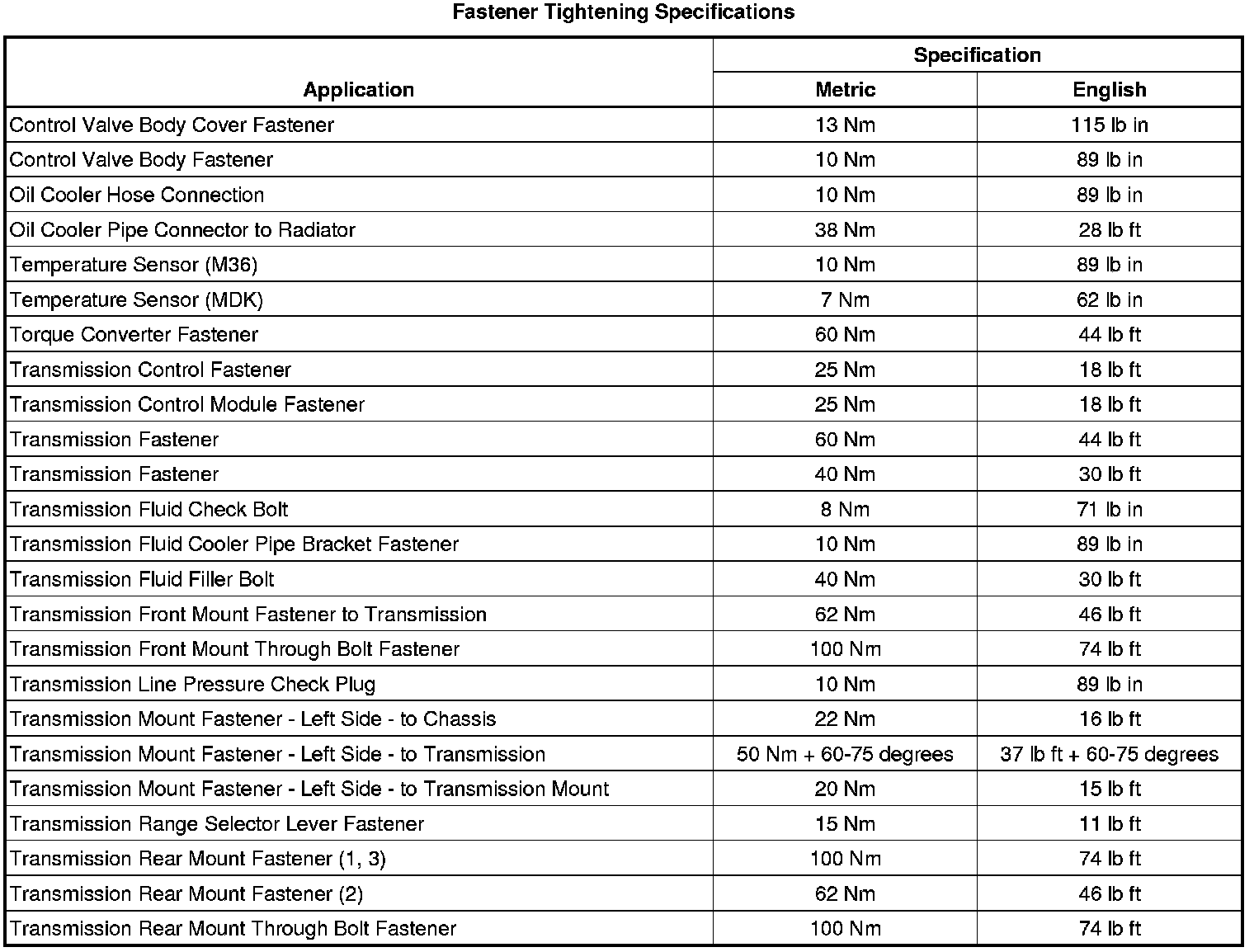Fastener Tightening Specifications