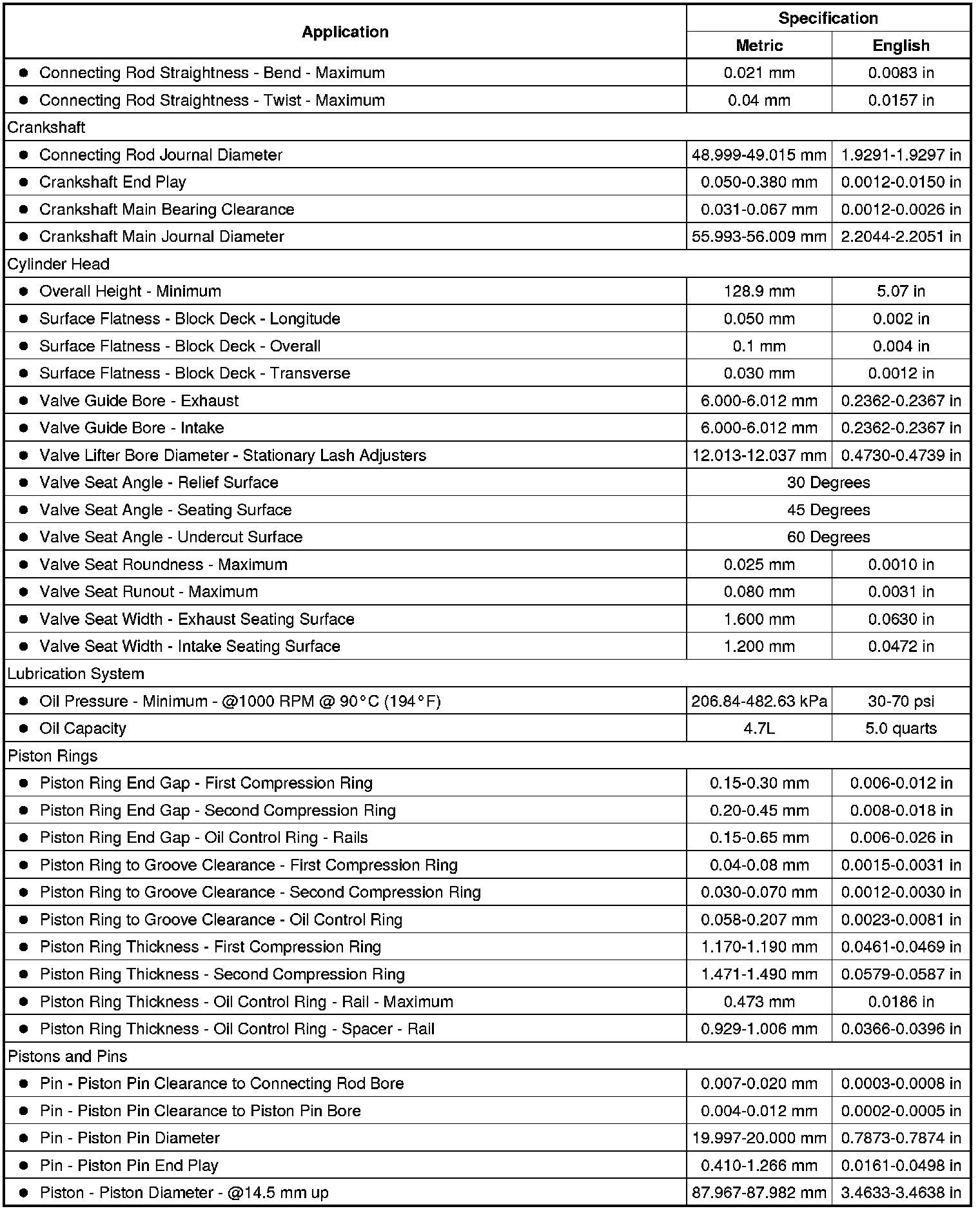 Engine Mechanical Specifications (LAF, LEA, or LUK)