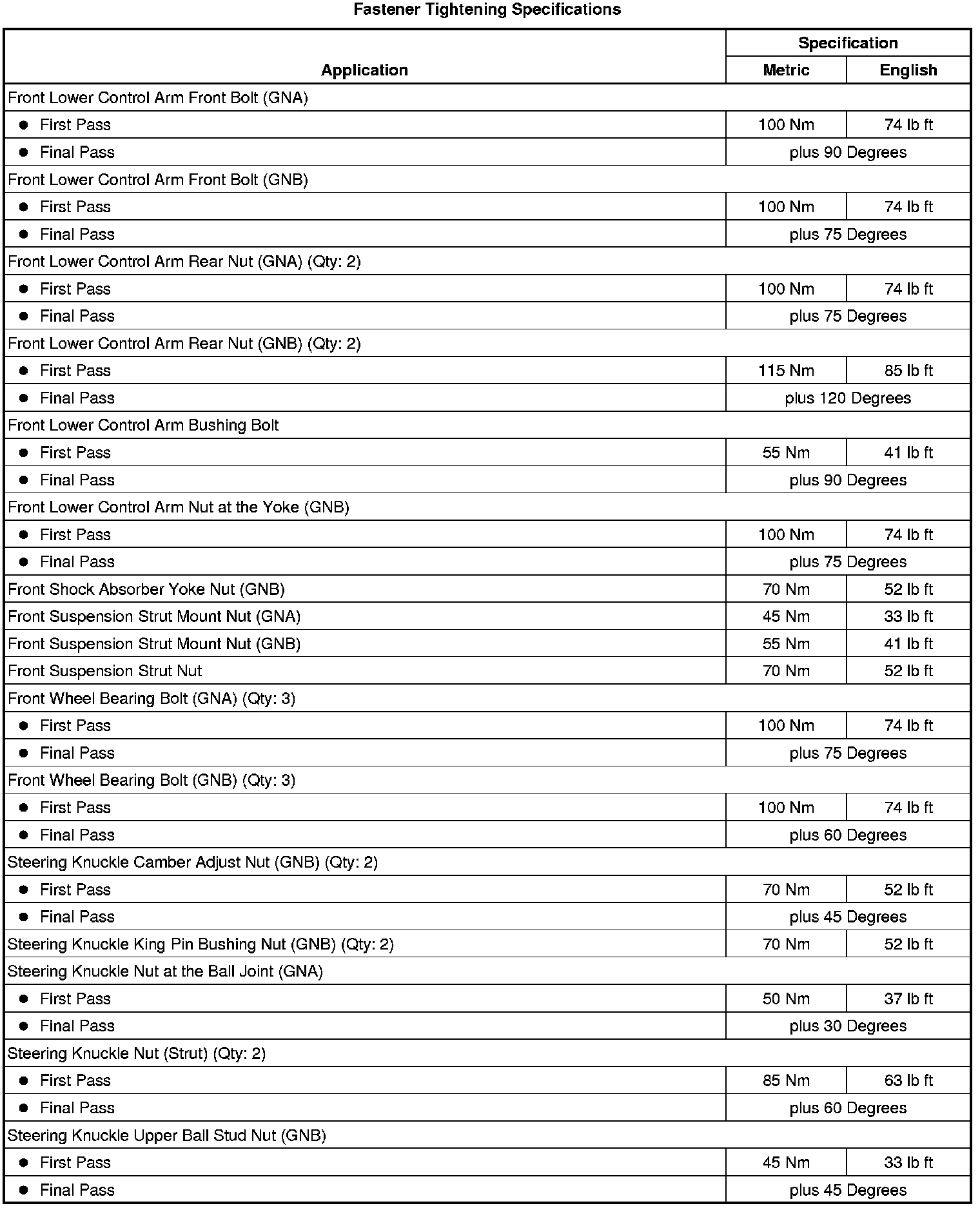 Fastener Tightening Specifications