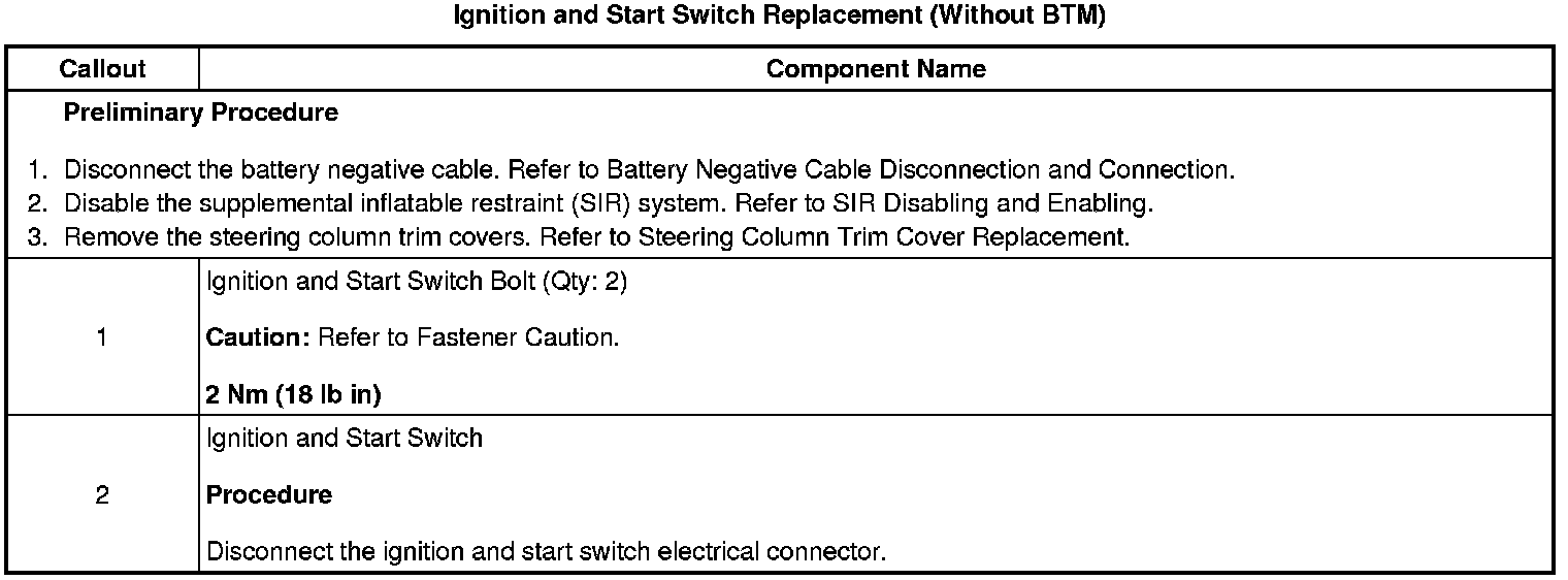 Ignition and Start Switch Replacement (Without BTM)