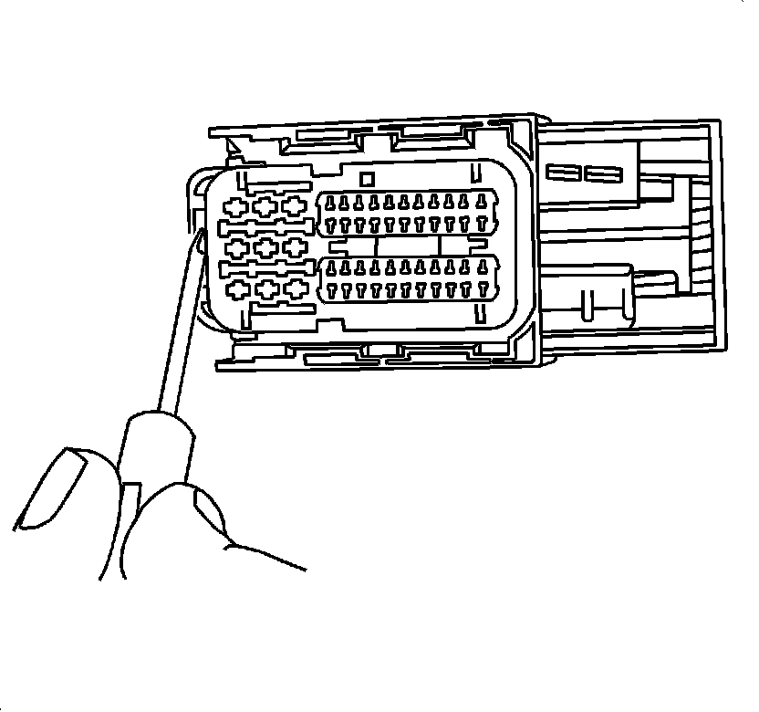 8. Use the J-38125-24 or the J-38125-560 tool to release the terminals by inserting the tool into the terminal release cavity.