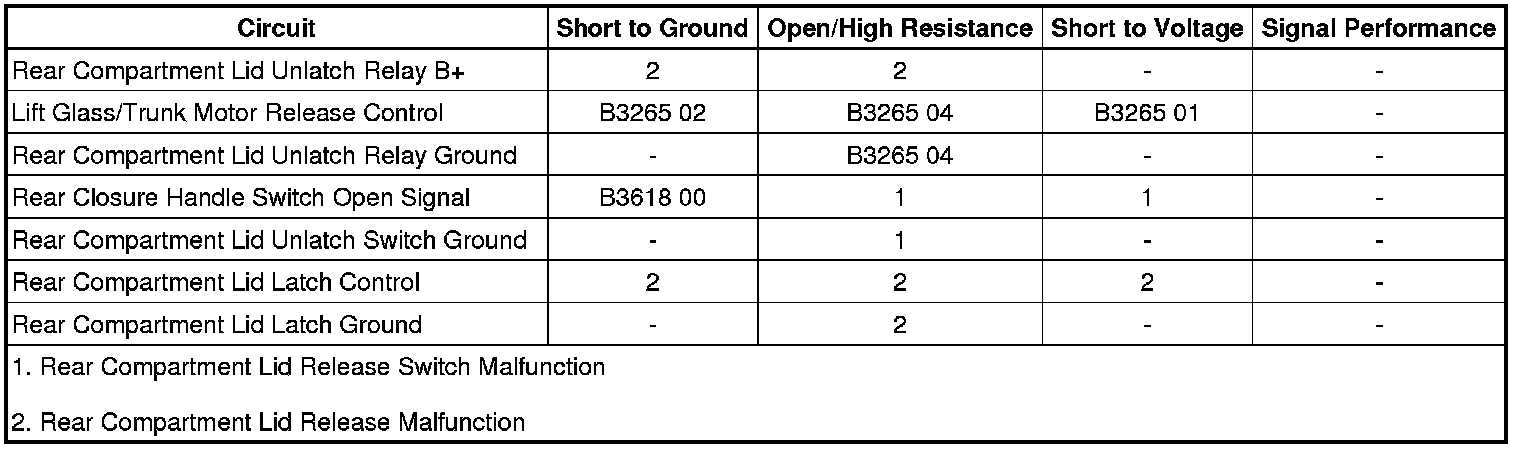 Refer to Circuit/System Testing - Trunk Release Switch Inoperative