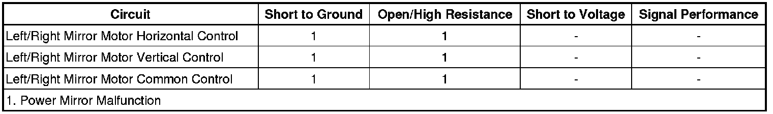 • If the test lamp remains OFF during either of the commands, test for a short to voltage, short to ground, or an open/high resistance on the control circuits. If the circuits test normal, replace the S52 outside mirror switch.